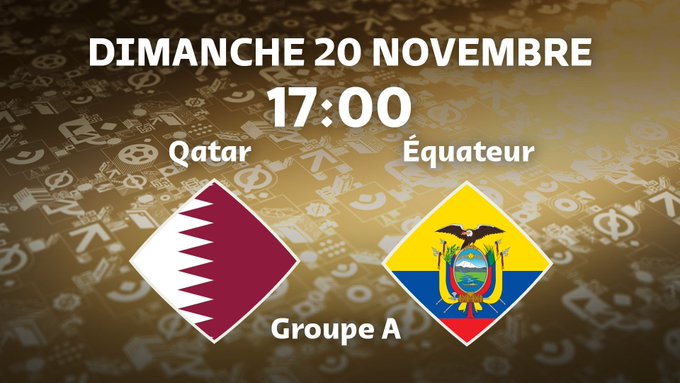 Web Bienvenue sur le live de LÉquipe pour suivre ce match de football en direct entre Qatar et Equateur Coupe du monde 1re journée. Ça y est le compte à rebours. Web La Coupe du monde 2022 débute ce dimanche avec le match douverture entre le Qatar le pays hôte qui dispute son premier Mondial et lEquateur.